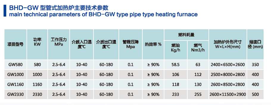 管式热水(原油)加热炉为分体式,辐射受热面布置在卧式圆筒炉膛四周,对流受热面布置在炉膛后部矩形箱体内。受热介质被强制流动,从受热面管子一端进入,管子另一端引出。配用进口或国产燃烧器。具有受热面结构独特、承受压力高、温升大、自动化程度高的突出特点。